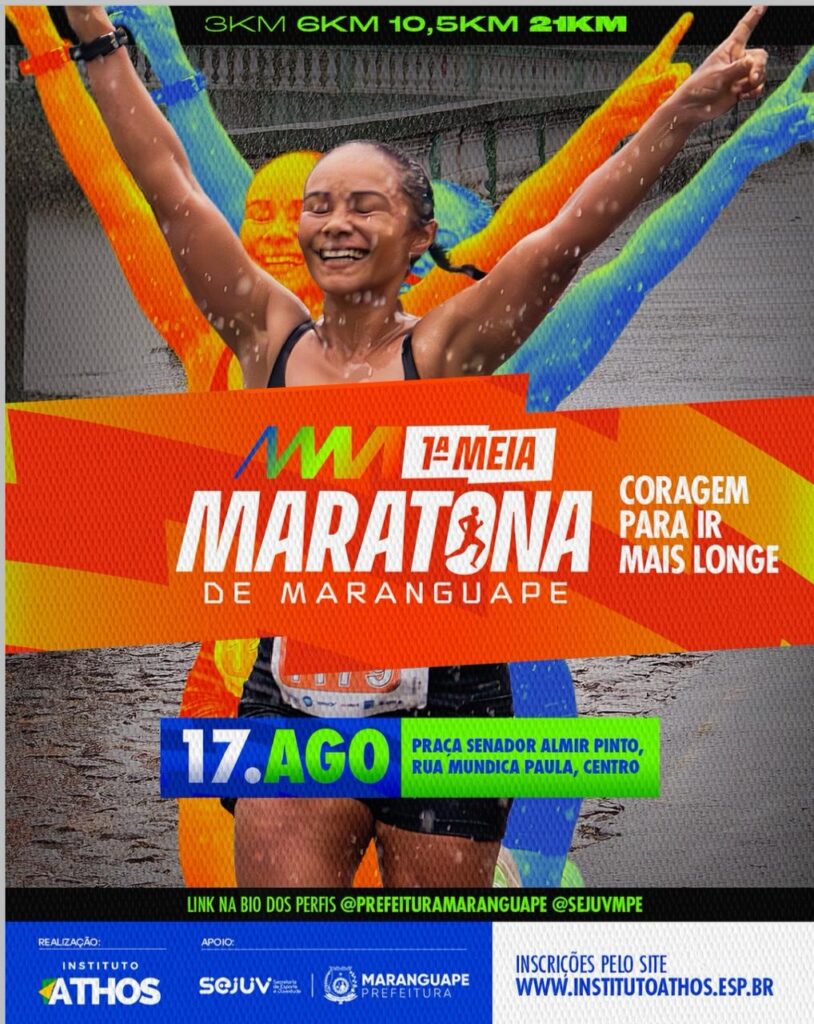 1.1 – A 1ª Meia Maratona de Maranguape será realizada no dia 17/08/2025 (domingo), no município de Maranguape/CE, com largada e chegada na Praça Senador Almir Pinto, Rua Mundica Paula, no Centro de Maranguape/CE, com a participação de pessoas de ambos os gêneros devidamente inscritos no evento.